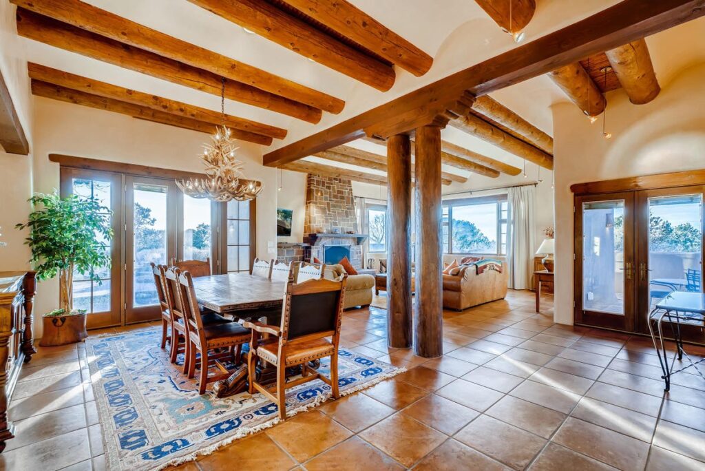 The property is about 10 minutes away from downtown Santa Fe, known for its Pueblo-style architecture, world-renowned arts scene and historic buildings including chapels and shrines.